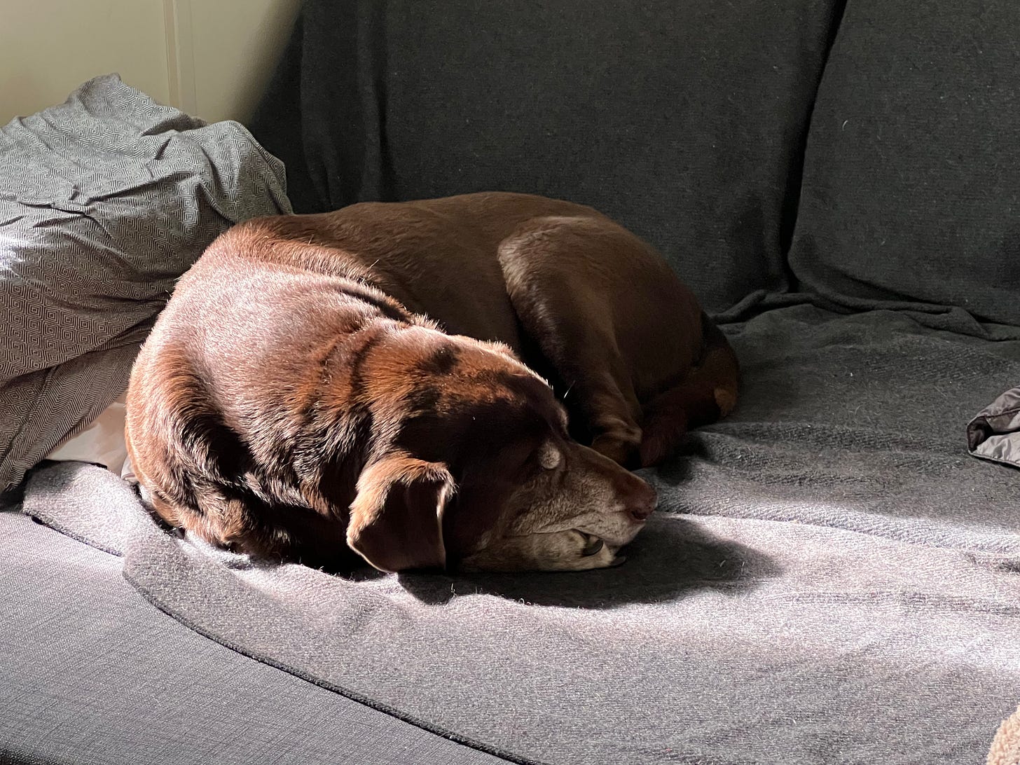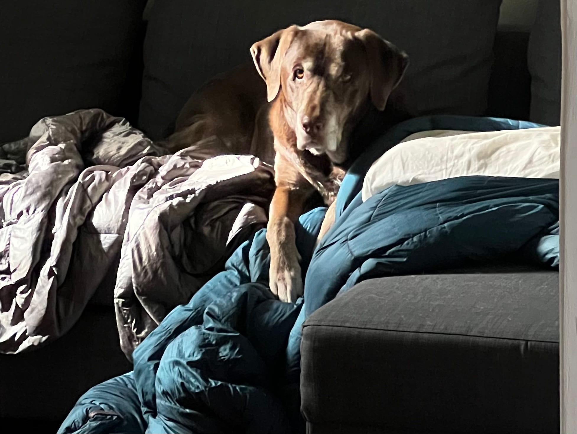 Then, this morning, I heard Jake’s toenails hit the floor, and immediately rose to let him out. Good boy! I said. Jake didn’t wag as usual, just walked out. I was congratulating ourselves - lately Jake has been a little incontinent, rising in the late evening or early hours of the morning to go to the bathroom but mis-timing it and doing his wee in front of the door, unable to hold it those few extra steps before he reaches the outside. We’ve begun making sure his last walk of the evening is late, and restricting water after 10p, and this morning it seemed we’d solved the problem - no accident in front of the door, he made it outside…or so I thought. I made a coffee and opened my laptop and did some work, keeping an ear out for the sound of him scratching at the door to come back in.