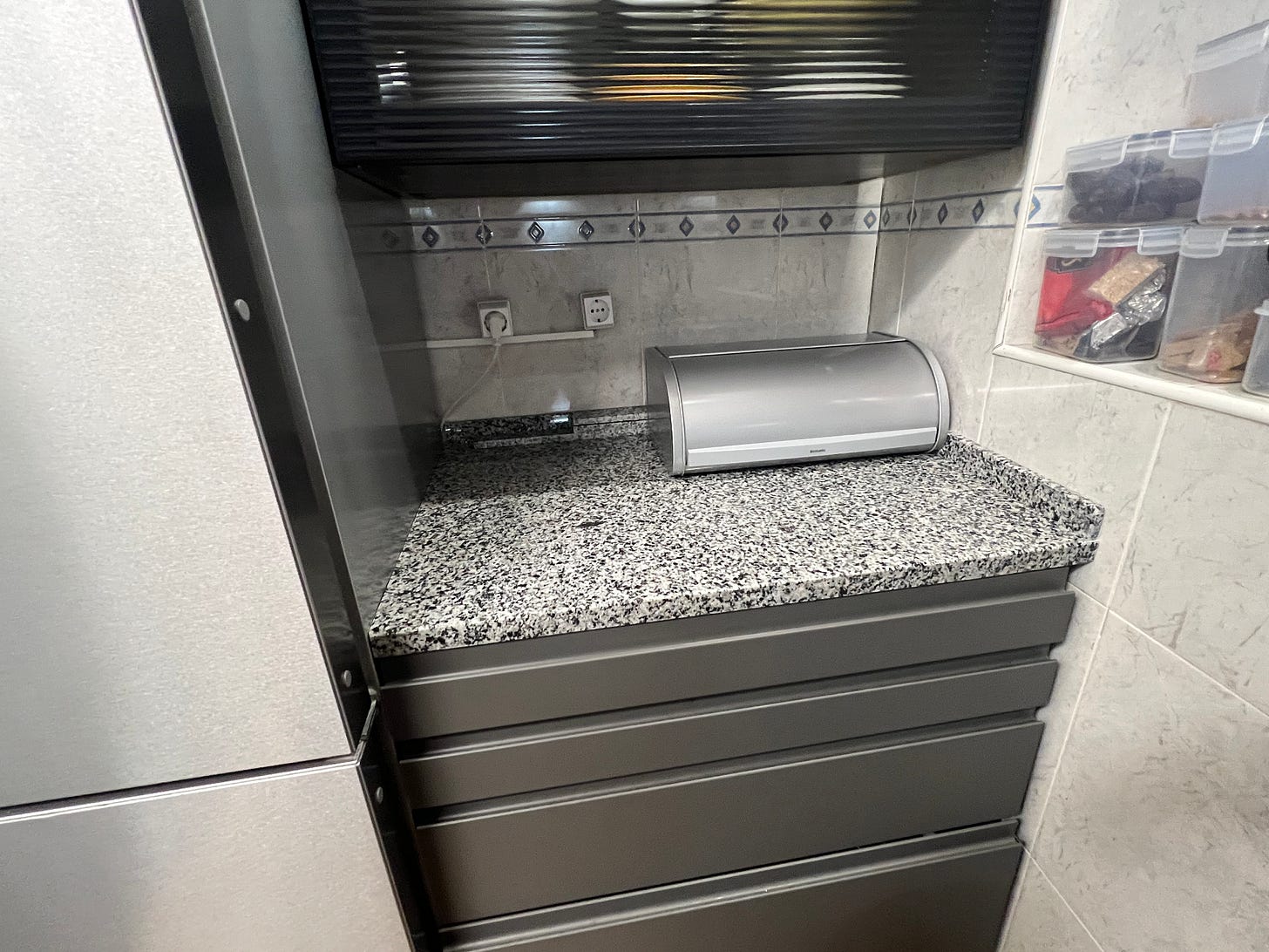 The granite counter tops and the sink were the last pieces to fall into place. It’s probably the smallest kitchen I’ve ever seen - a tall person like my h can spread his arms like wings and touch walls on all sides no matter where he’s standing - but with careful planning we have made it a highly functional space that meets all of our needs and is a pleasure to cook in. And it’s even beautiful, the thick black, gray and white Angolan granite countertops and glossy black granite sink are the epitome of chi chi, modern practicality. Finally, a well equipped kitchen! All felt so right in my world. I turned around and around in the middle of this tiny, perfect kitchen, feeling more fortunate than any princess in any ball gown.